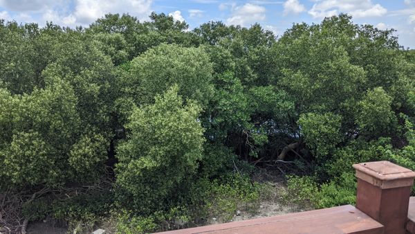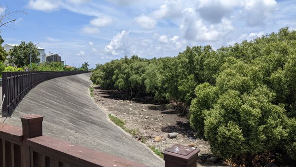 I walked about five minutes across the busy road and into the back alley behind where I was staying. I came to the elevated running path along the Tainan River. Gone were the angry noises of motorcycle engines; in their place, the quaking gossips of bipedal companions living near the mangrove.
